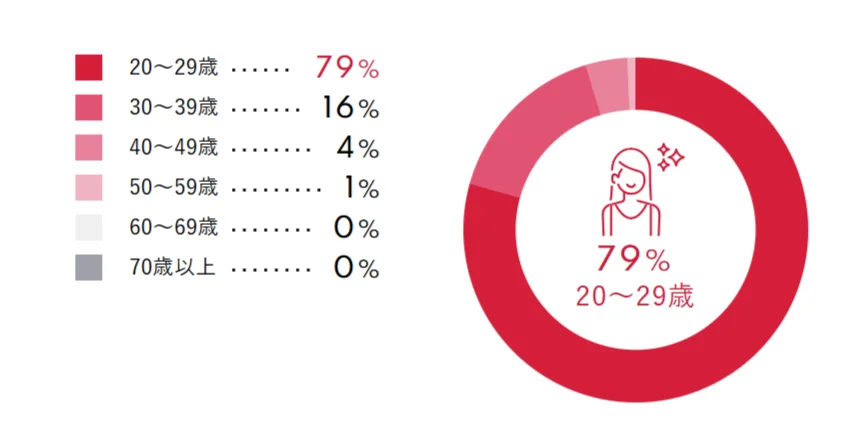 | 年齢 | 女性:18歳〜40代 男性:20代〜50代 |