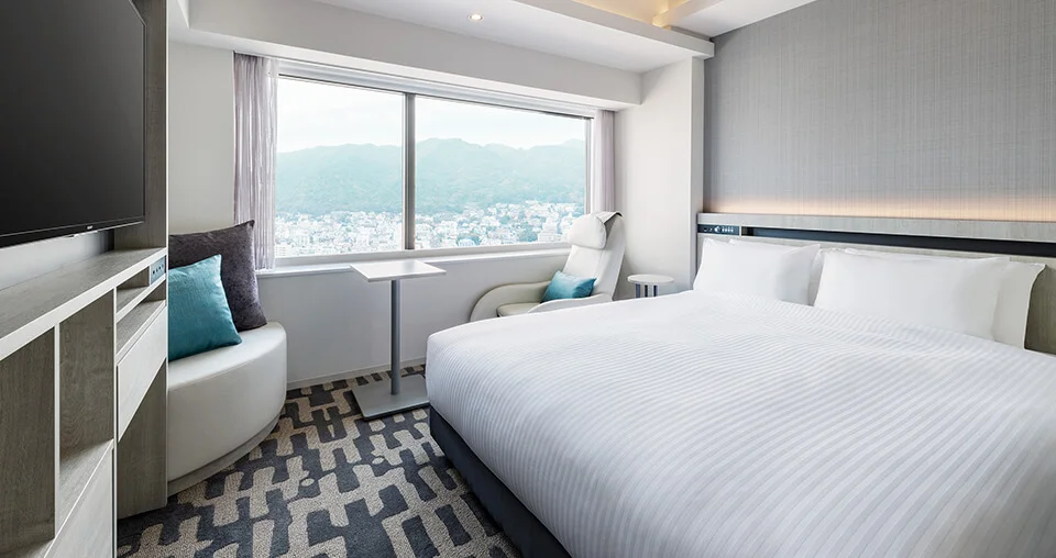 三宮駅近でめちゃ便利。おしゃれでシンプルな客室は二人の距離も縮まる居心地のいい空間です。