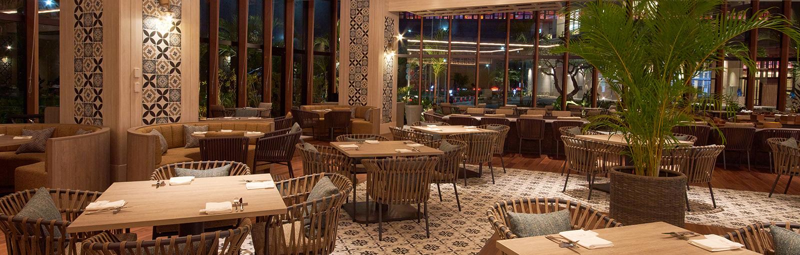 開放的な空間で、沖縄料理をはじめとした多彩な料理をライブキッチンで提供。五感で楽しむ食体験が魅力です。
