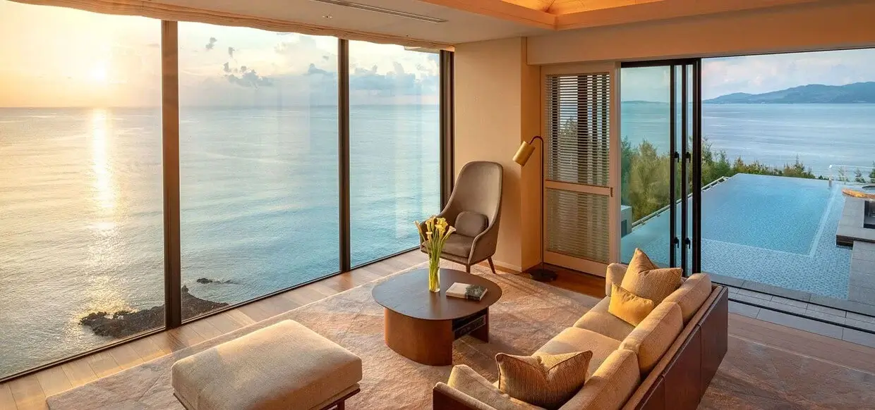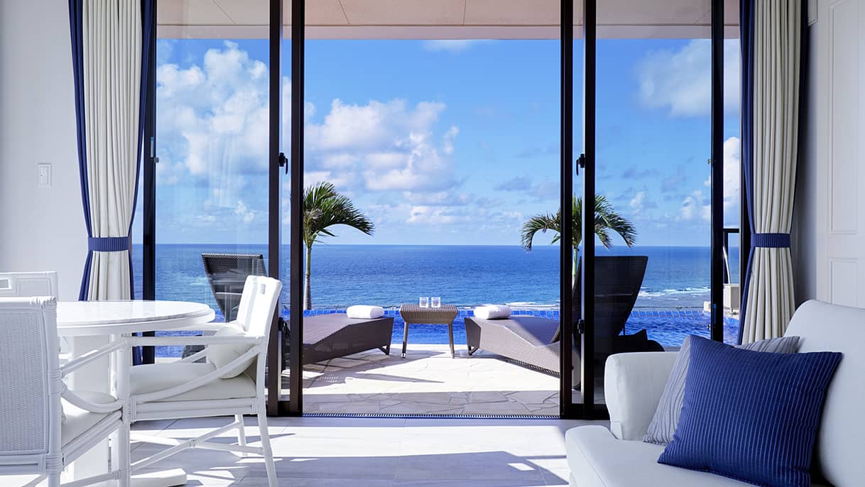 全室オーシャンビューのスイート仕様。プライベートプール付きヴィラや、シャンパンが楽しめる専用ラウンジなど、贅沢な滞在が叶います。