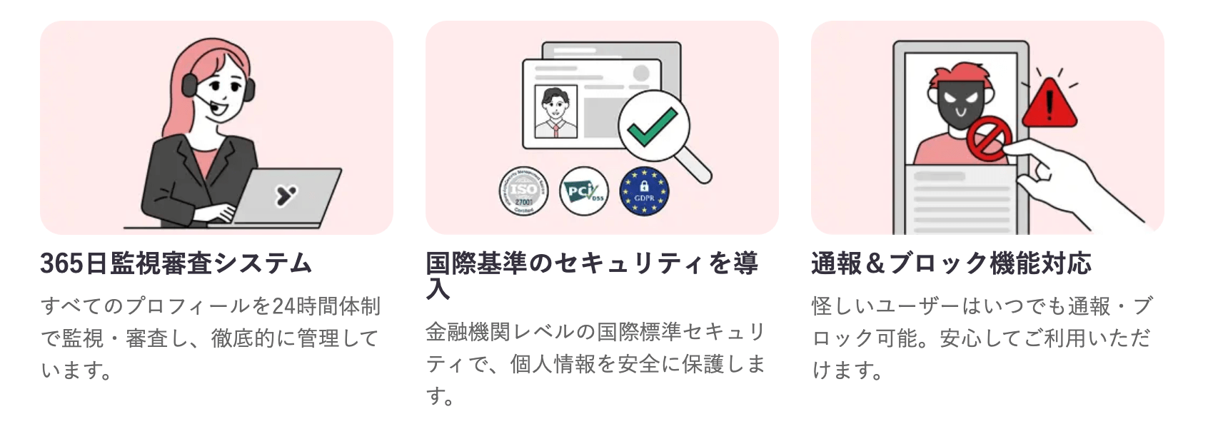 安全性も高いパパ活アプリでは下記のような機能が実装されています。