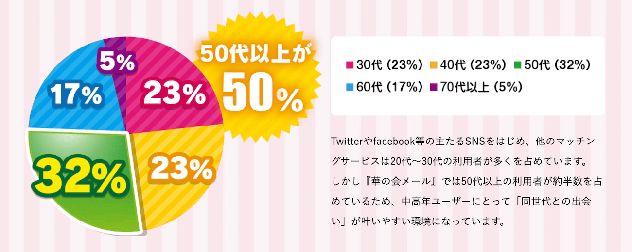 | 年齢 | 女性:20代〜30代 男性:30代〜60代 |