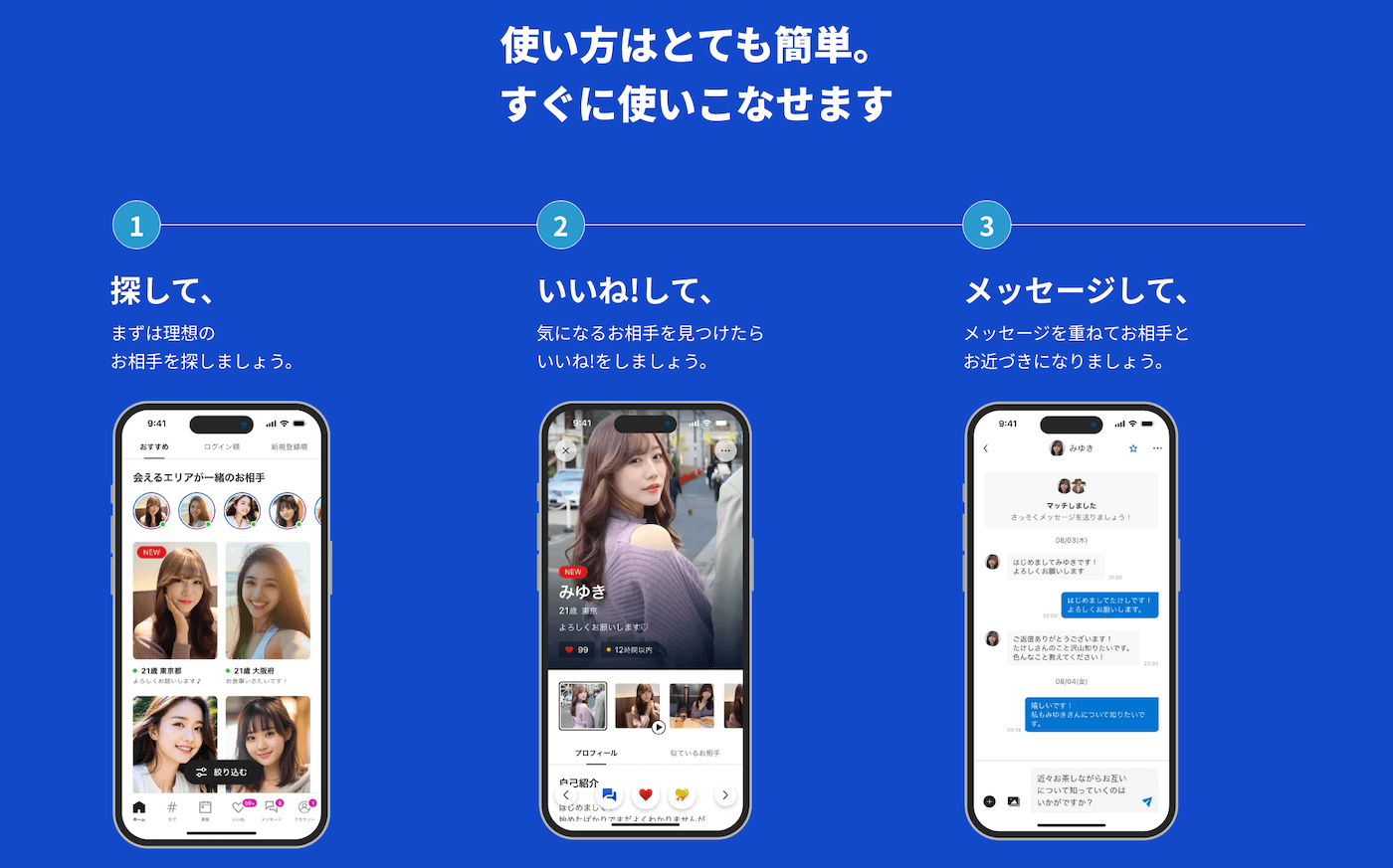 - マッチ不要だから自由にアプローチできる