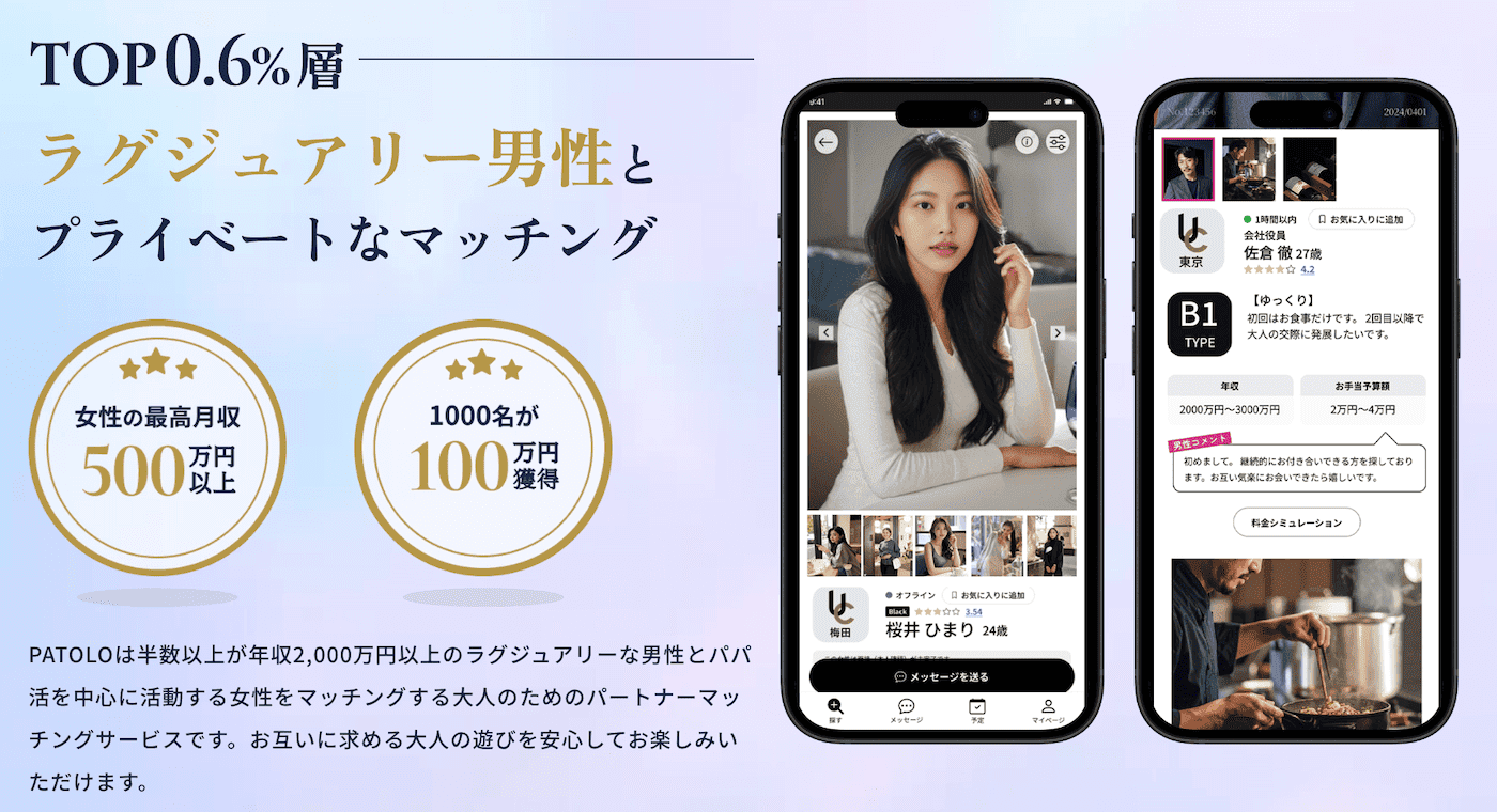 圧倒的なパパの数、パパを見つける便利な機能、そしてパパの年収の高さからペイターズはパパ活の定番アプリとして人気を誇っています!